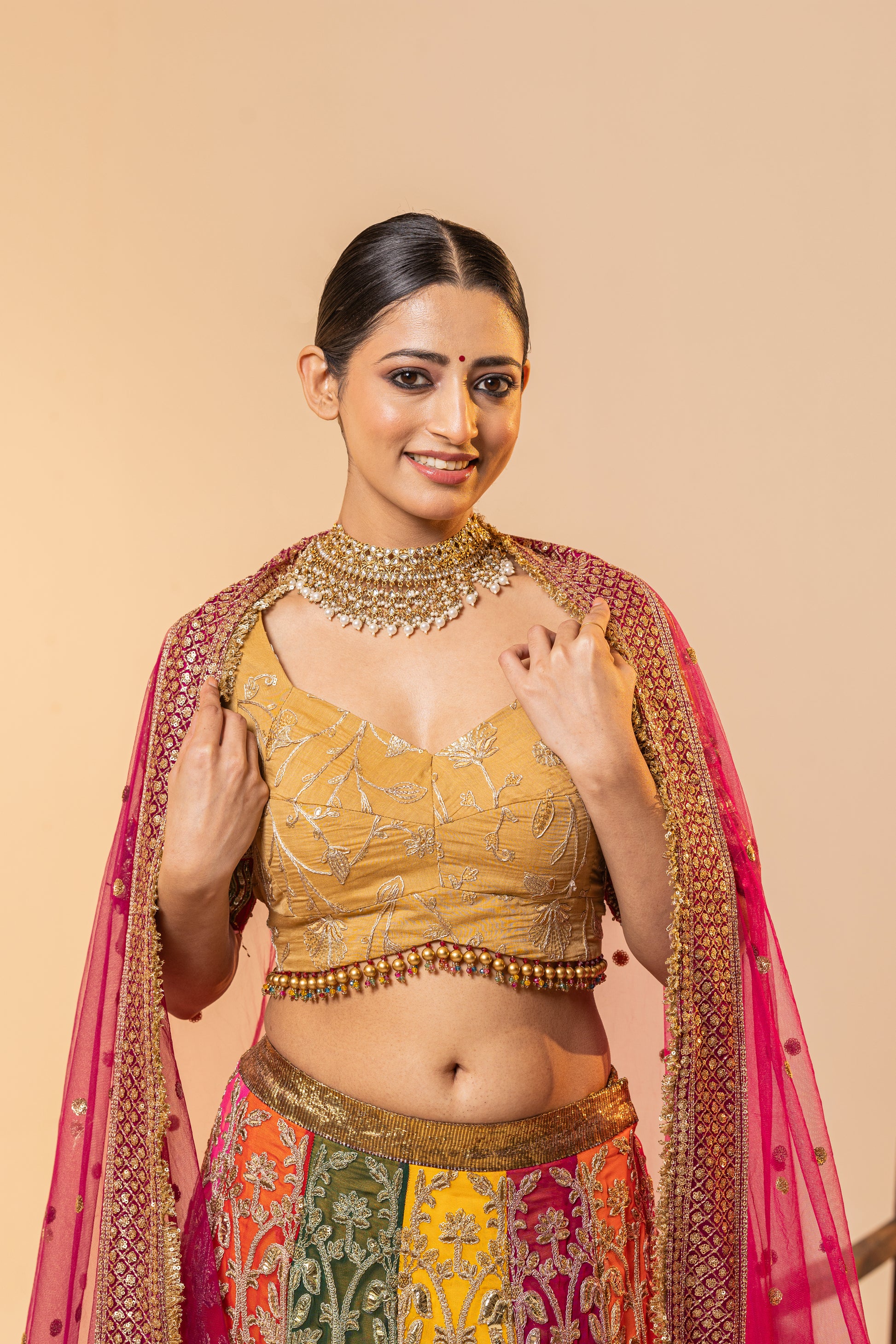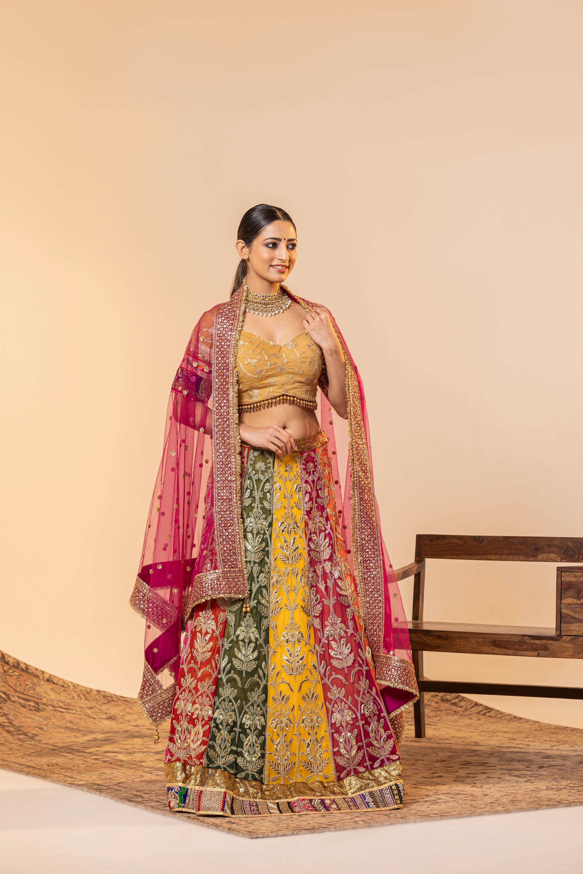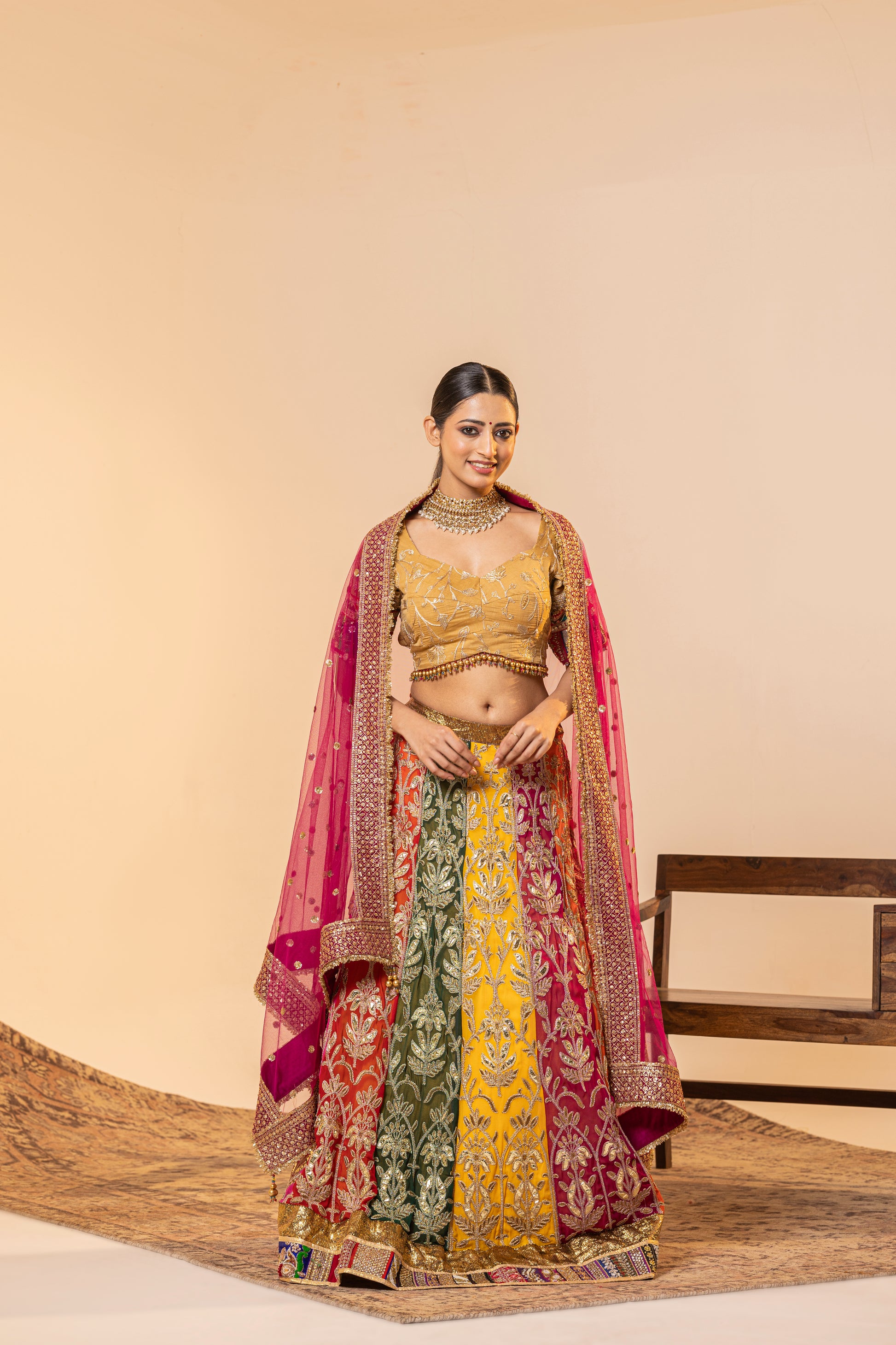 - Type: Multi-Panel/Colour Block Lehenga with vibrant colours and heavy Zari/Sequin work.