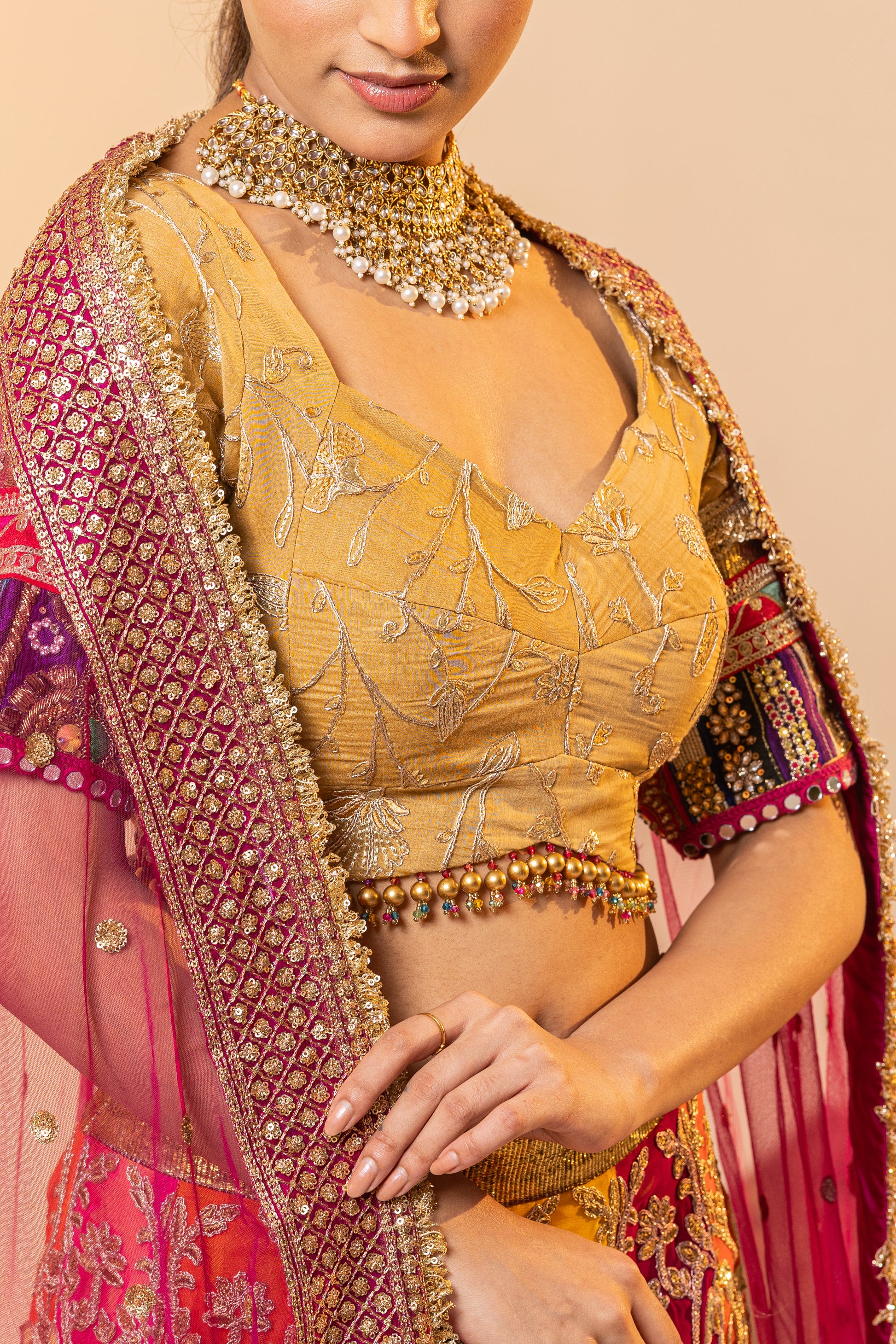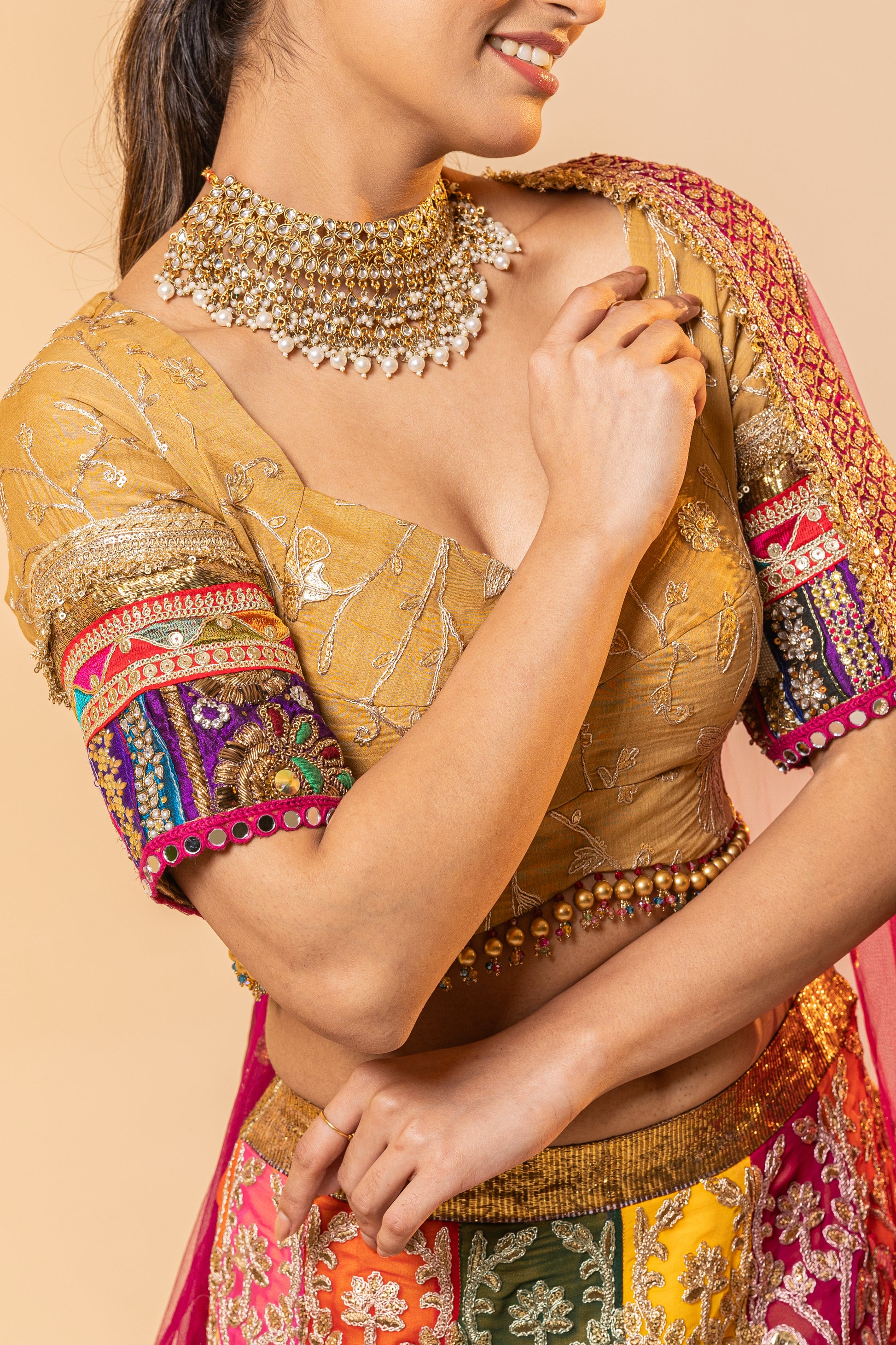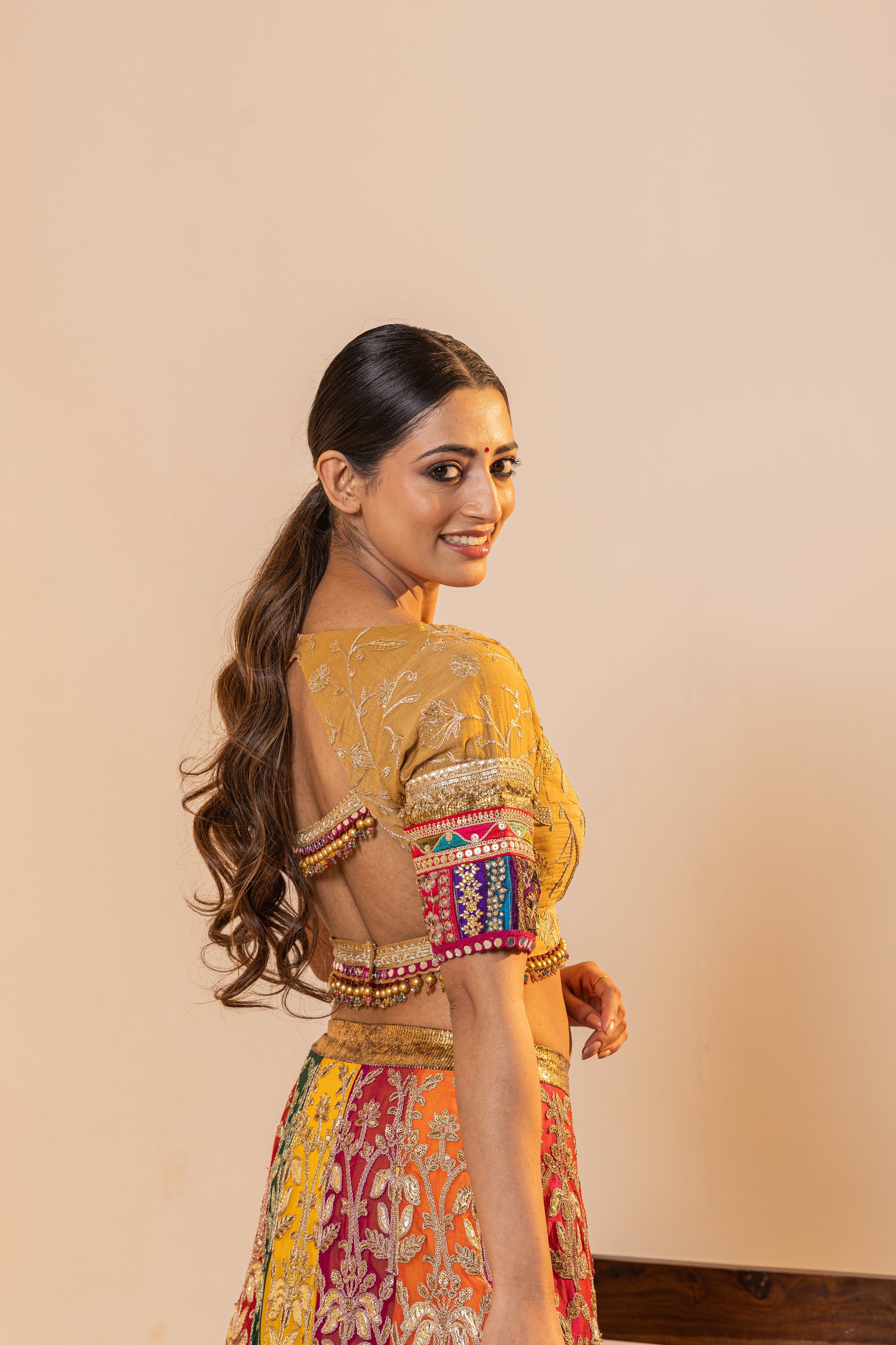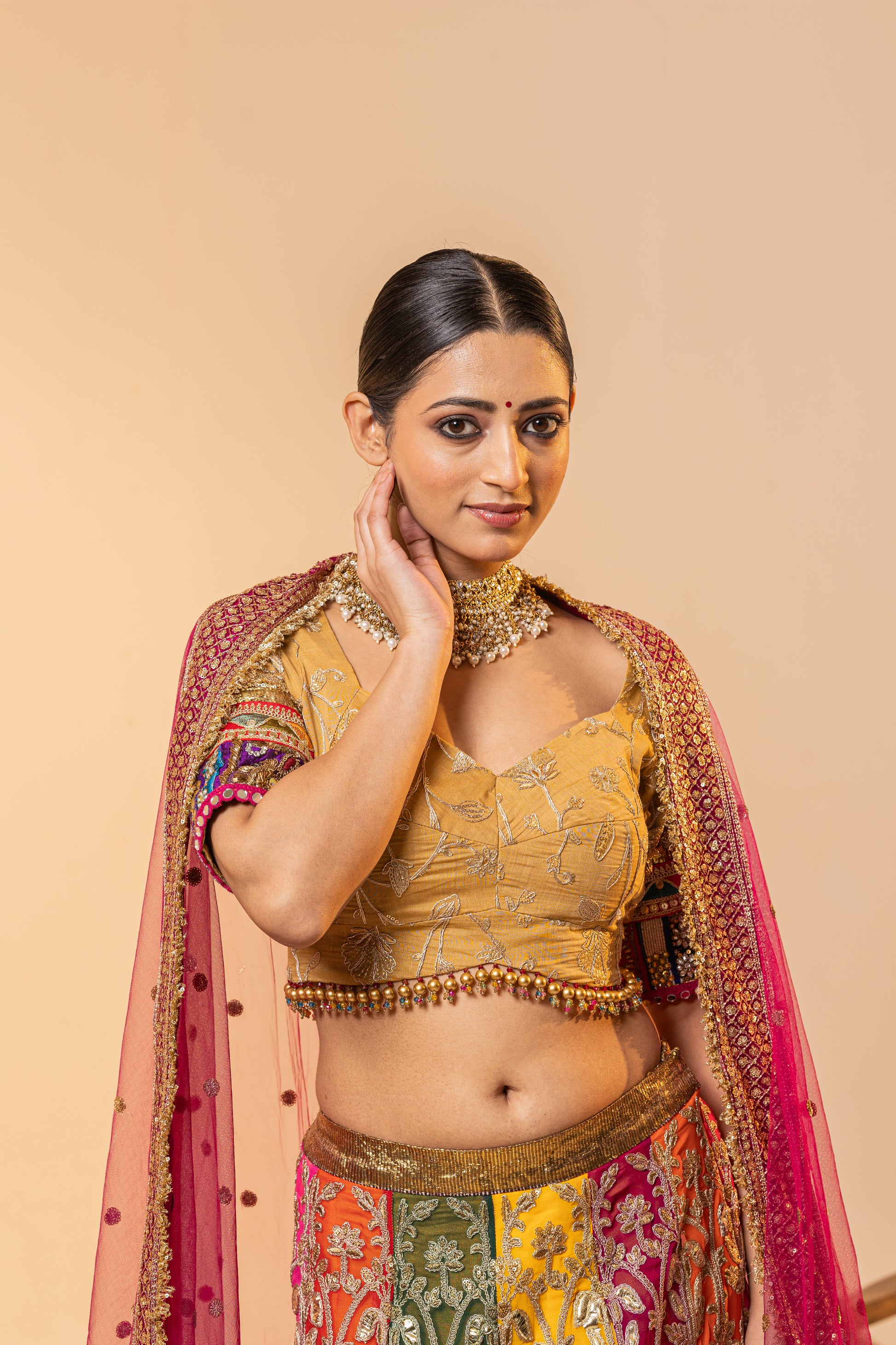 - Type: Multi-Panel/Colour Block Lehenga with vibrant colours and heavy Zari/Sequin work.