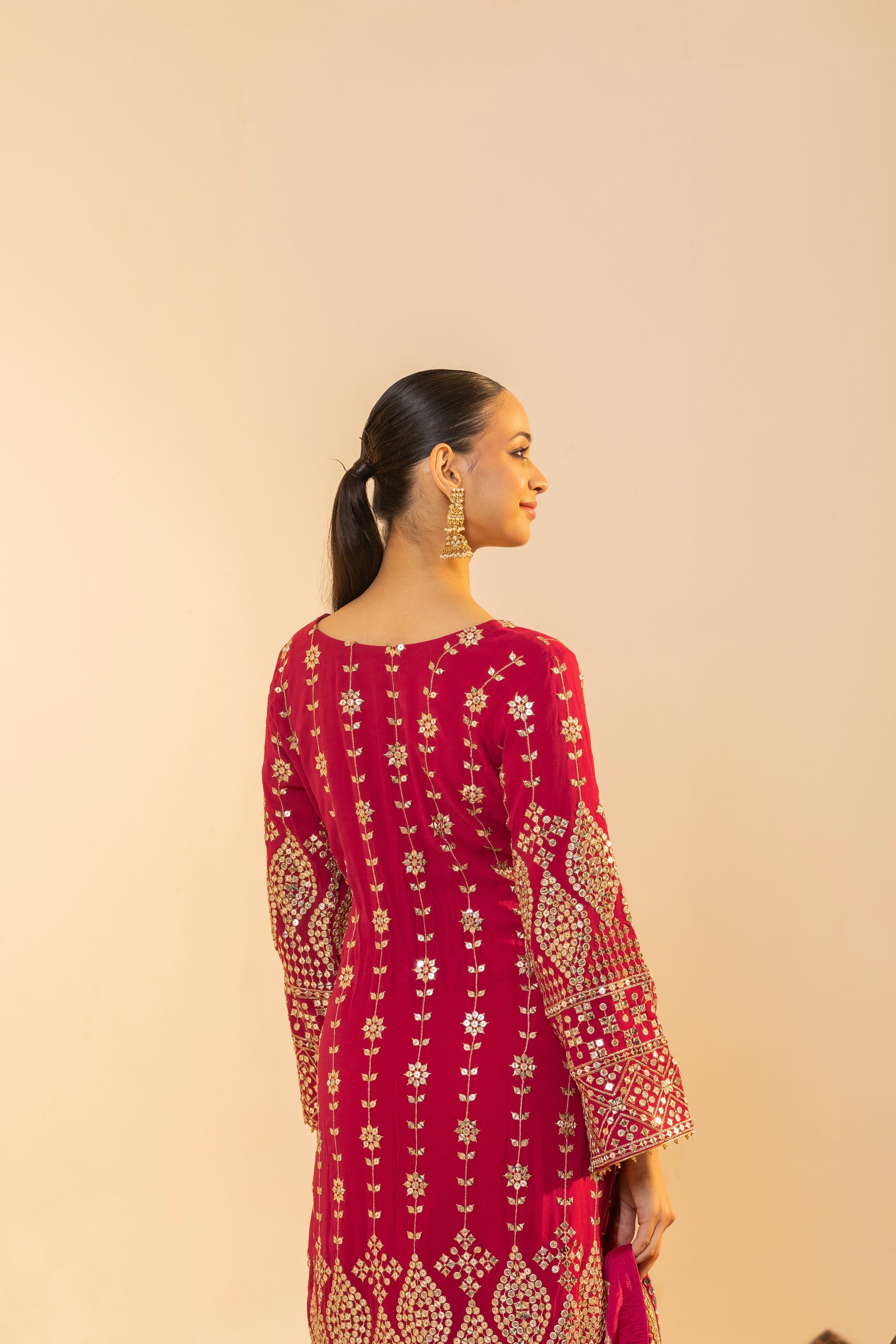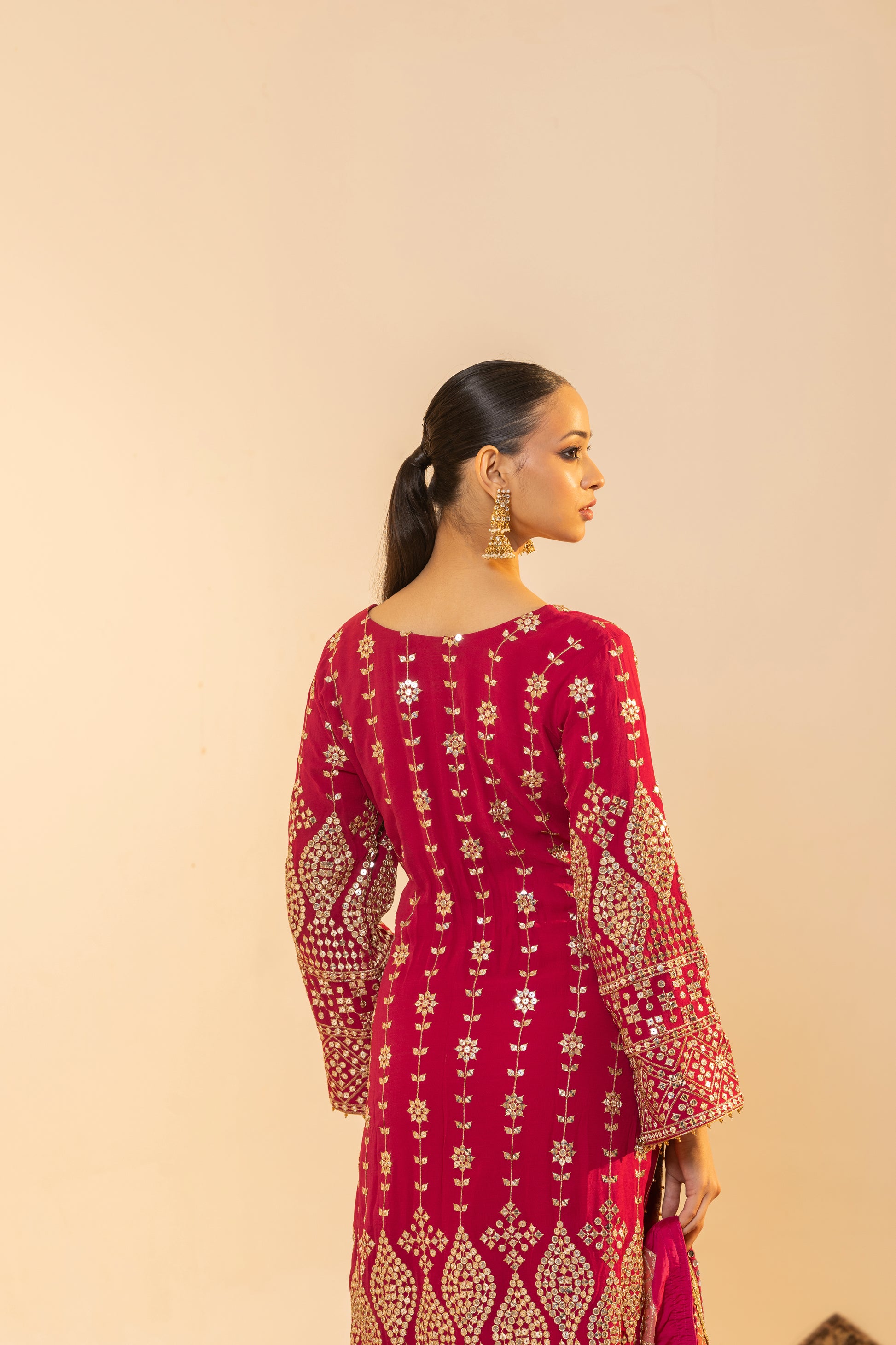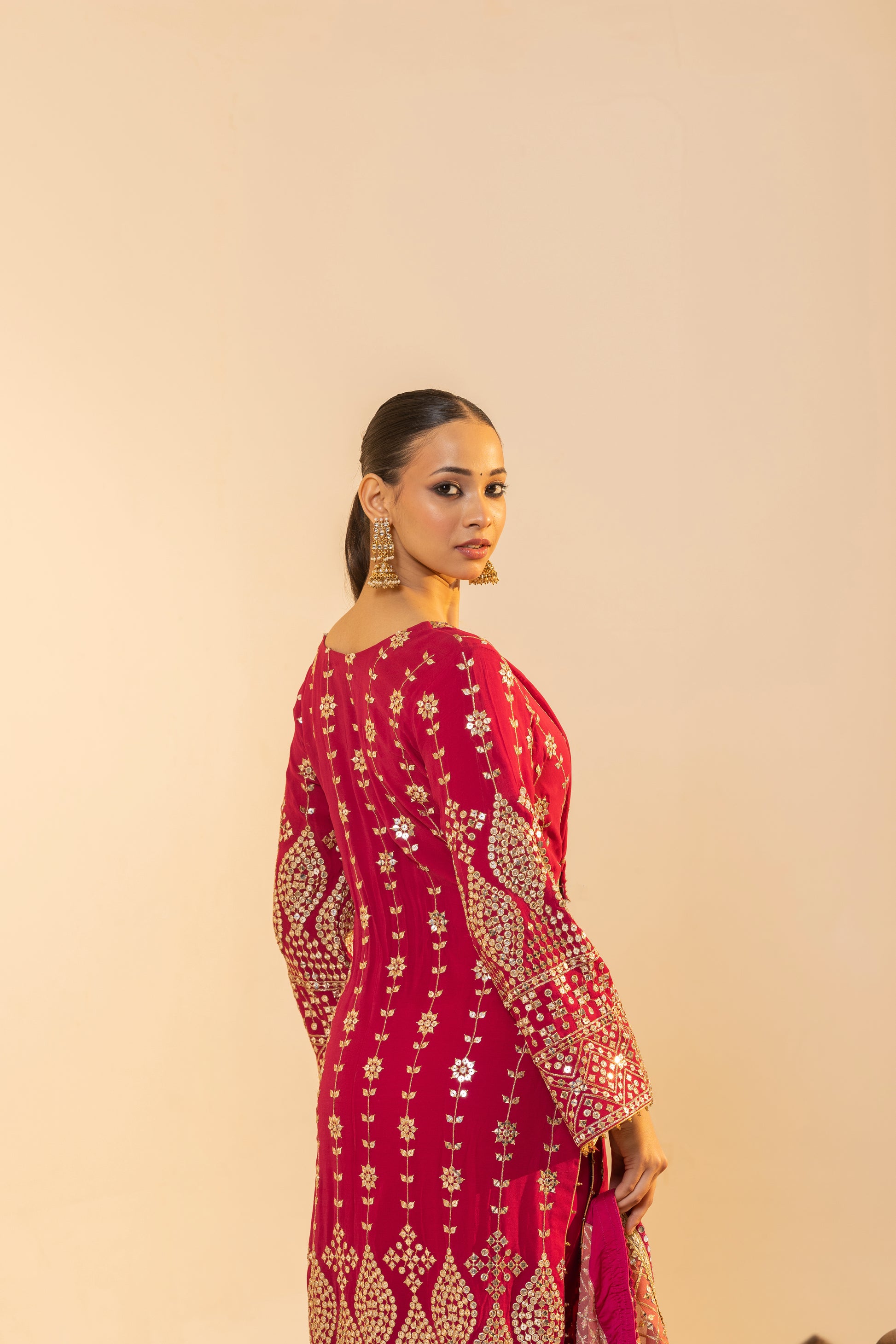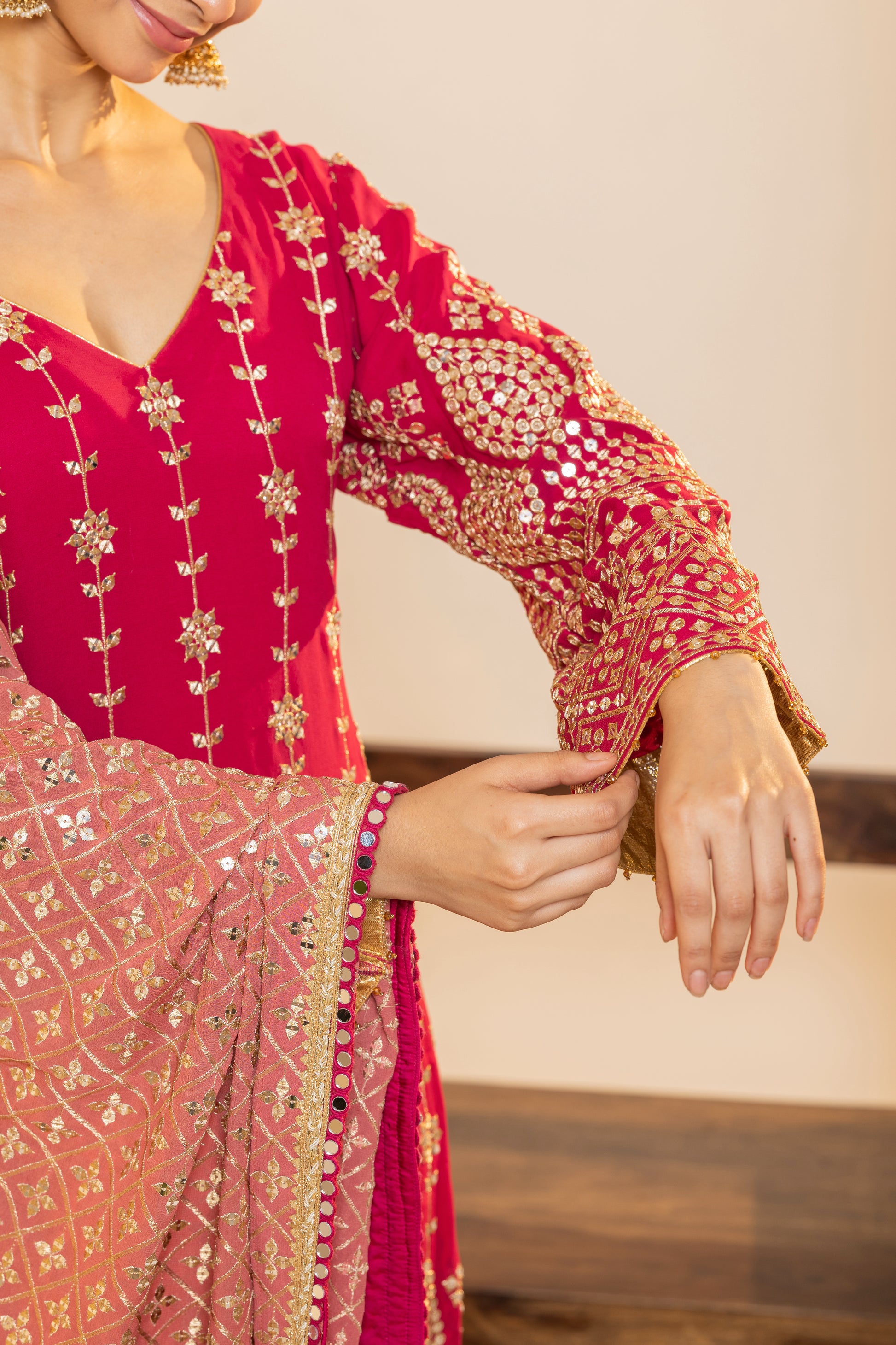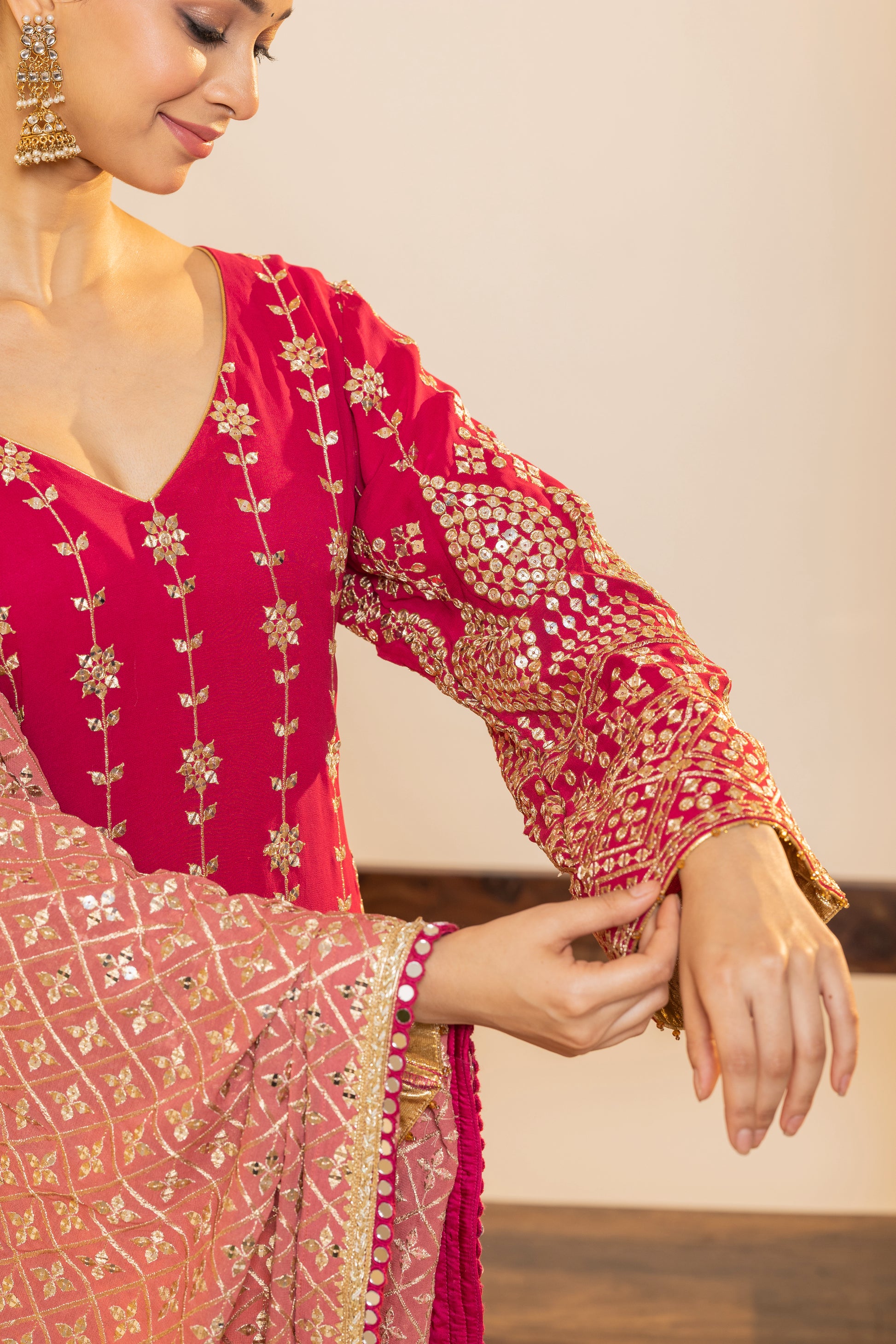 Rani Pink Tilla Work Flared-Sleeve Suit Set (Celebration Edit) | Achint Mehta