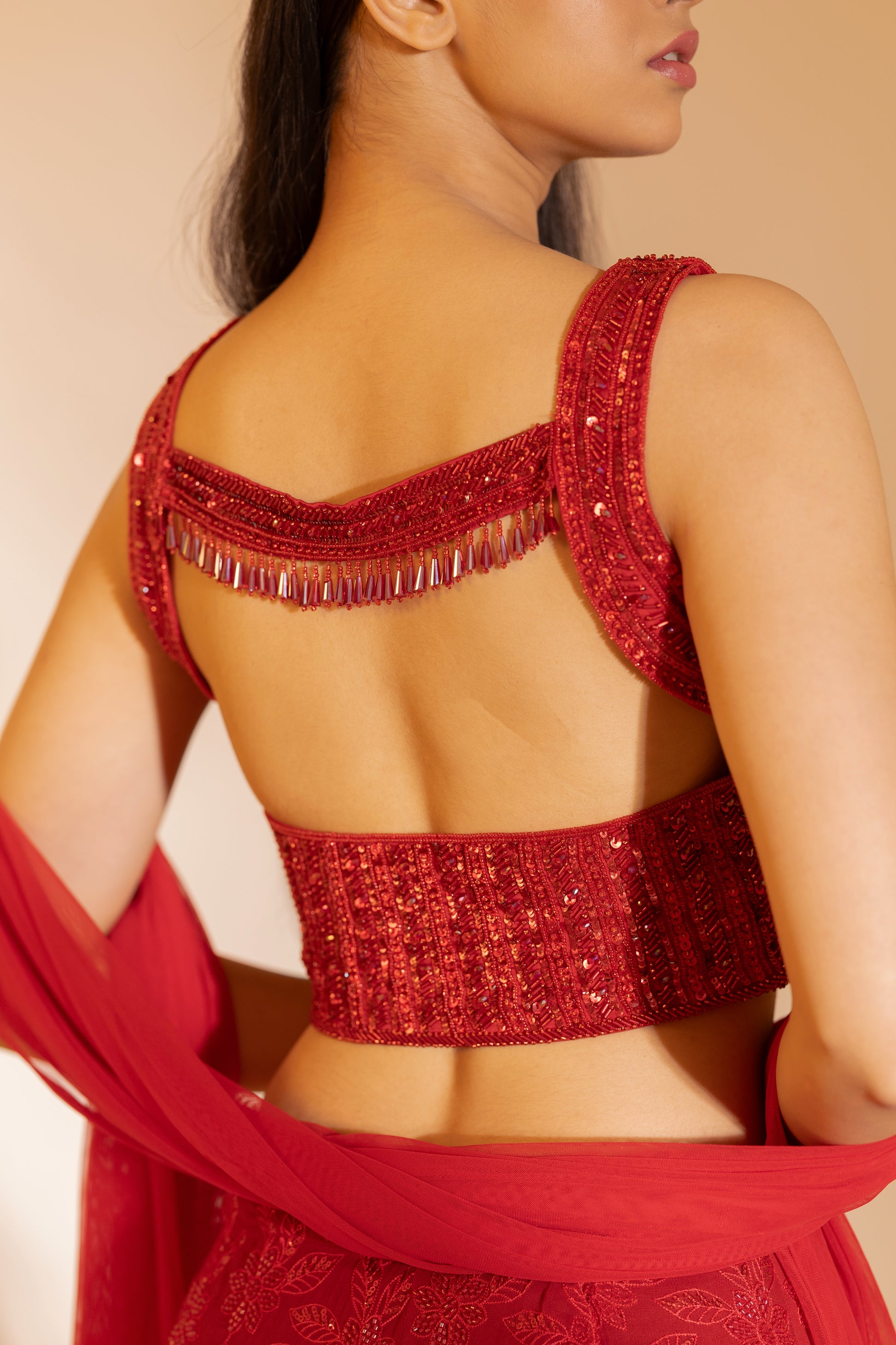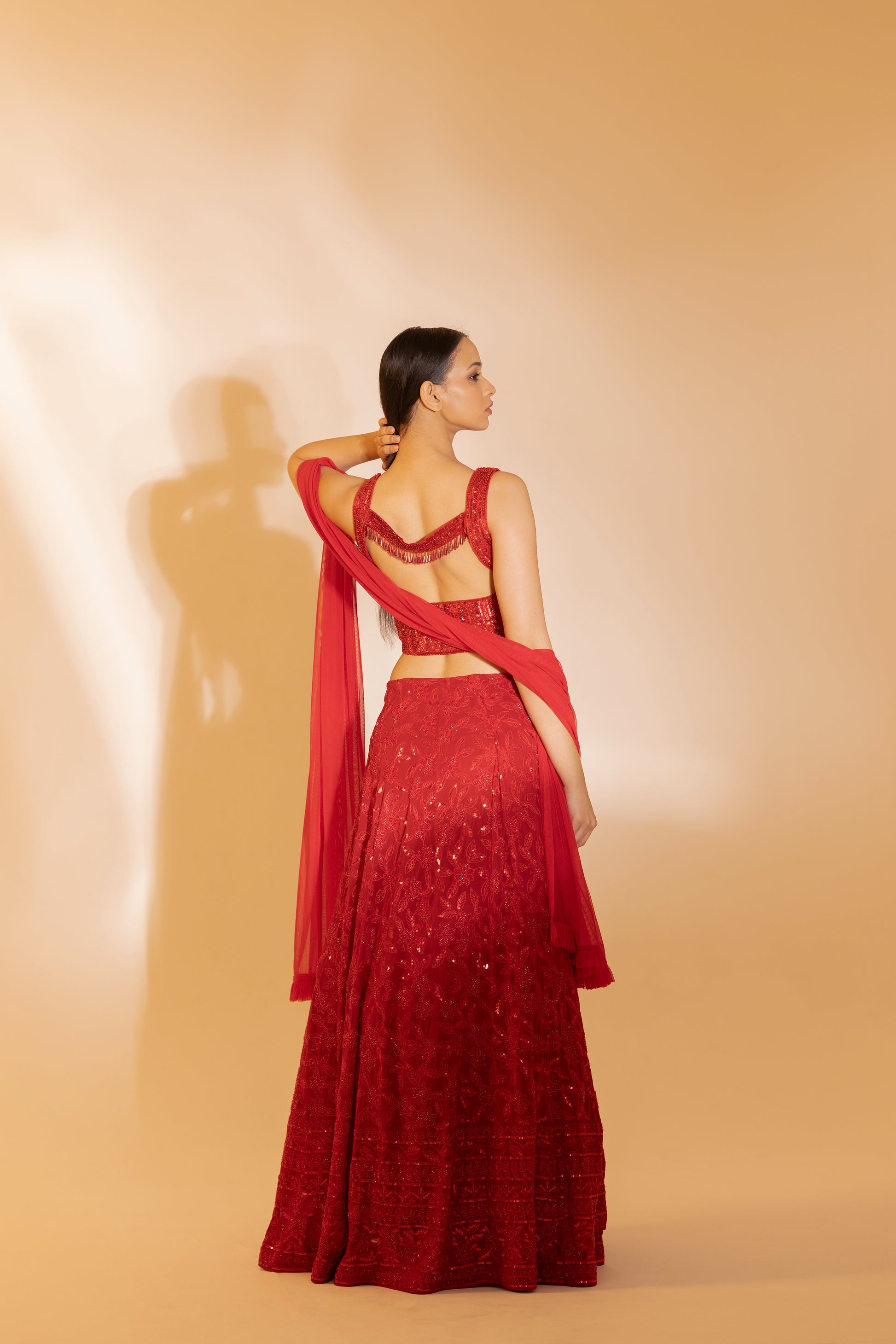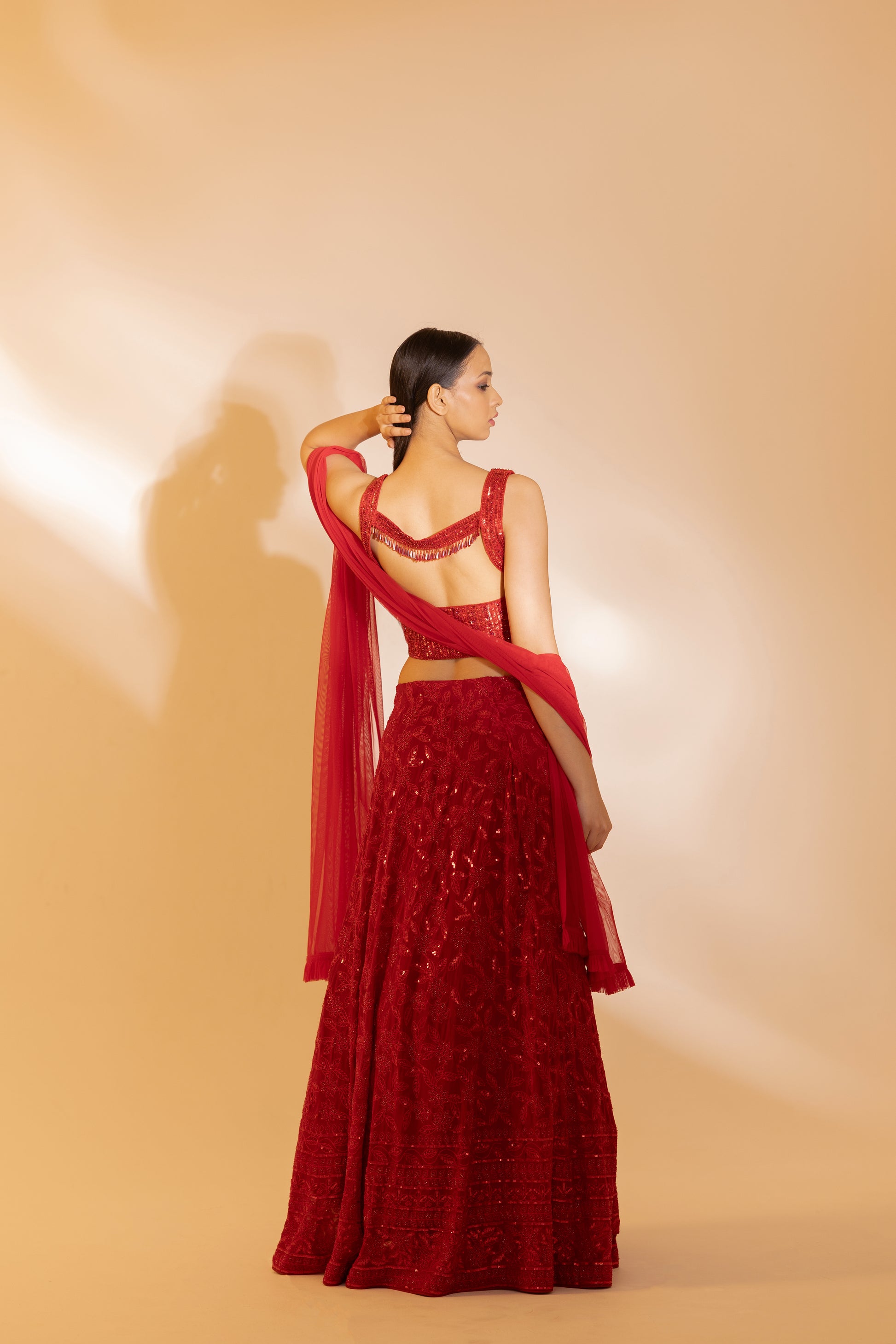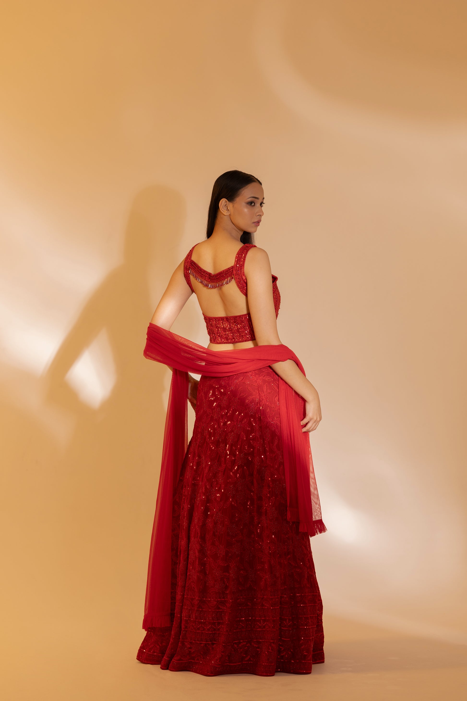 Scarlett Red Sequin Mesh Lehenga | Achint Mehta